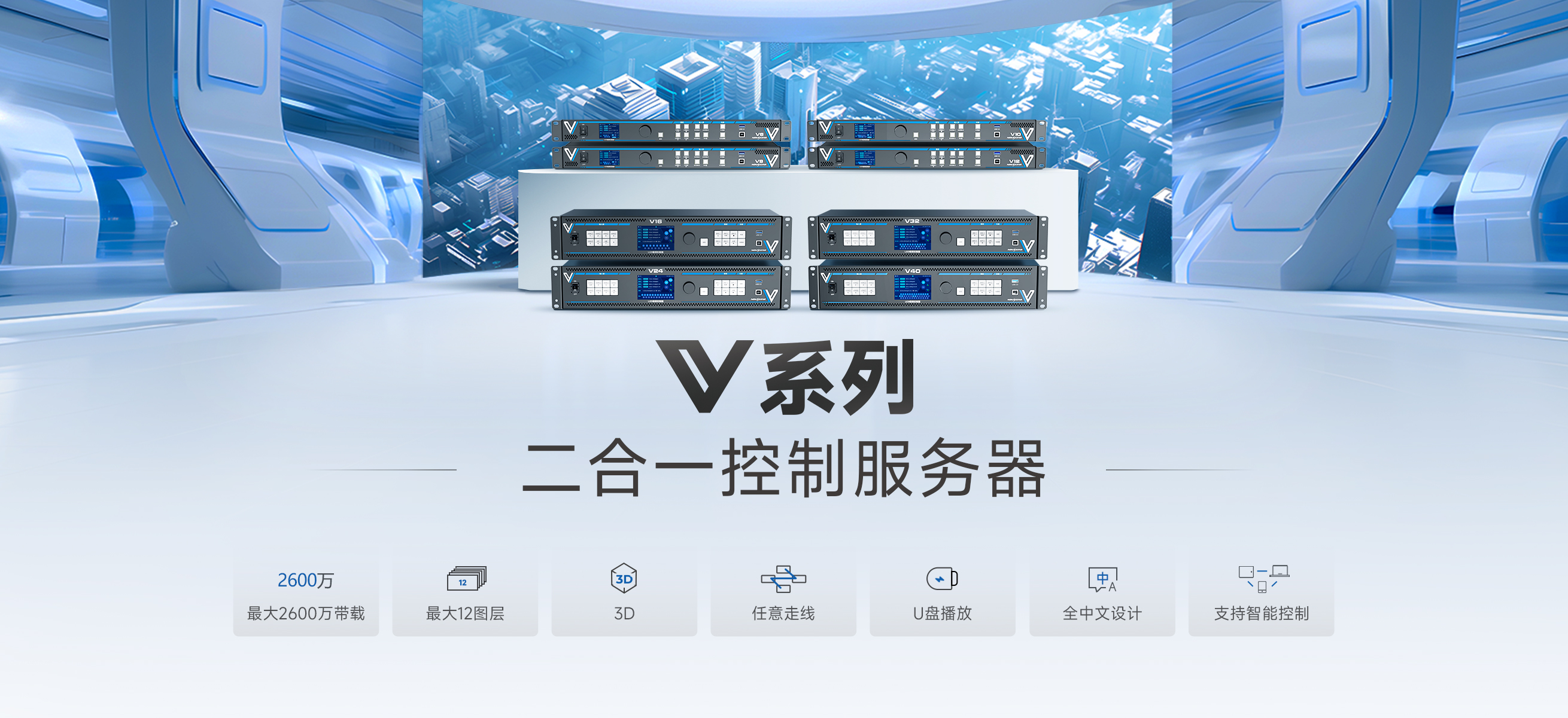 視頻控臺、無縫切換器、多畫面拼接處理器、視頻控制器、4K獨立主控、智能管理軟件等,強強聯手,高度集成,...